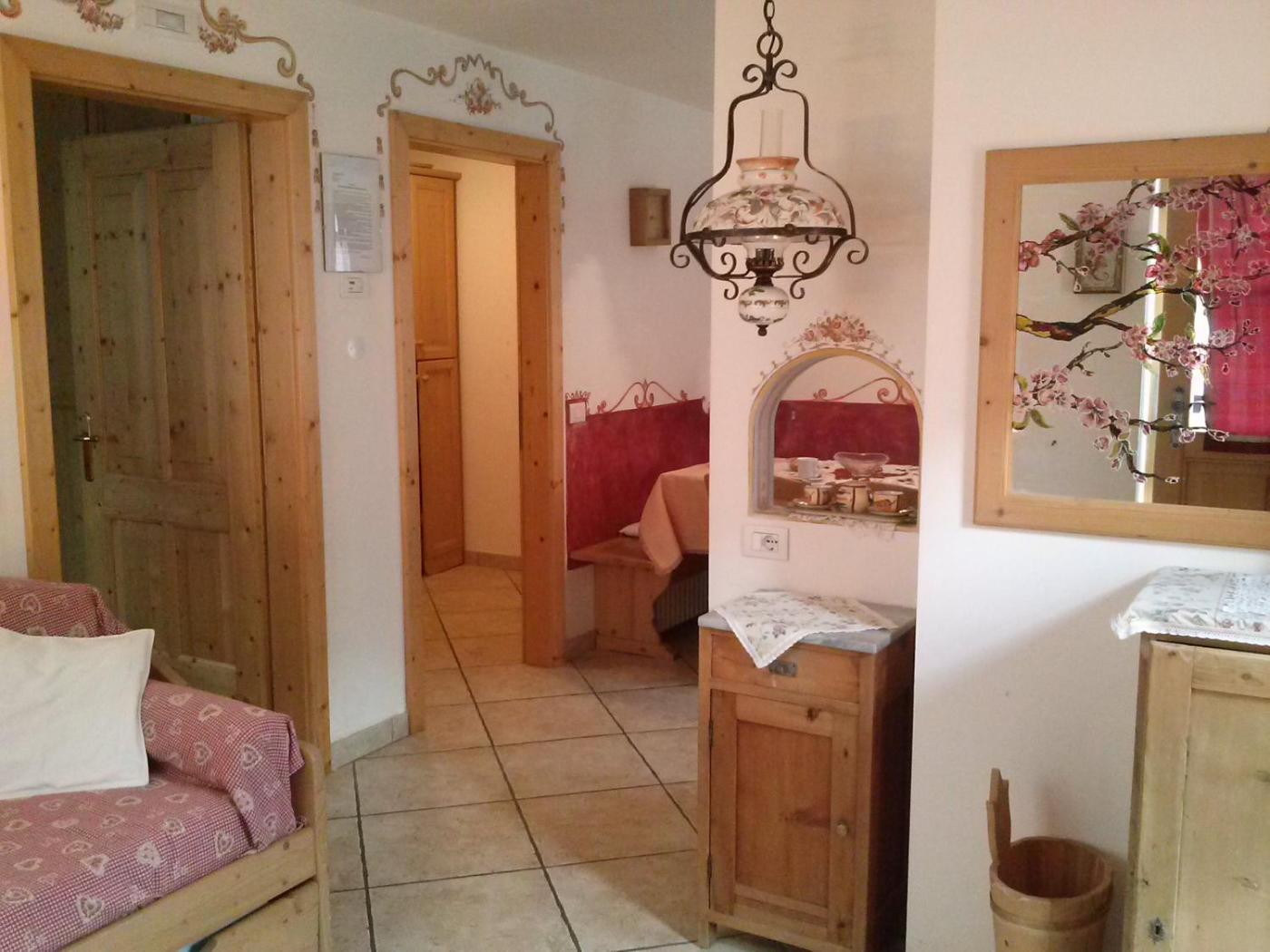 Appartamento con 2 Camere da Letto. Simply furnished apartment with Dolomite-view balcony, a washing machine and a kitchenette with a dishwasher. The private bathroom includes a shower with hydromassage function. You can bring your own bed linen and towels or rent them on site.